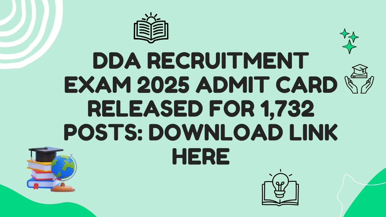 DDA Recruitment Exam 2025 Admit Card Released for 1,732 Posts: Download Link Here