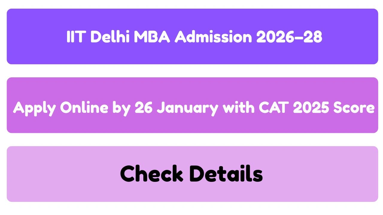 IIT Delhi MBA Admission 2026–28: Apply Online by 26 January with CAT 2025 Score